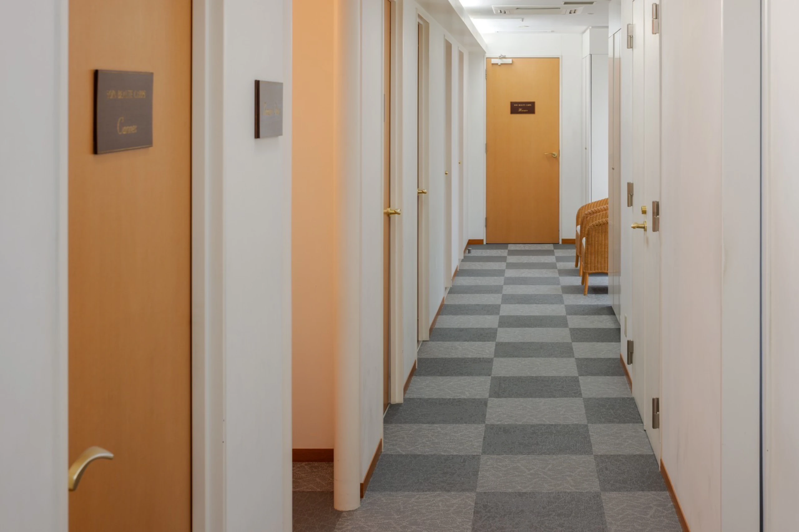多彩なメニューに応じた個室設備を備えるサロン内廊下。
