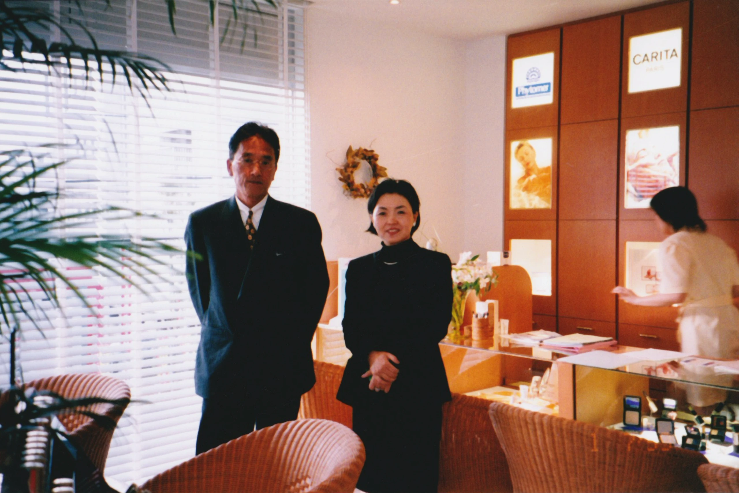 1992年、時代の変化に応じて店舗展開へと舵を切り、物販から体験・サービスへの価値転換を模索。フランスの名門ブランド・ゲラン社と提携し、フランス式の本格的なエステティックを導入しました。従来の化粧品販売に、プロフェッショナルな施術という新たな価値が加わり、ブランドはさらなる進化へ。その後はホテル内サロンの展開や百貨店への進出など挑戦を重ね、複数拠点での事業展開へと広がっていきました