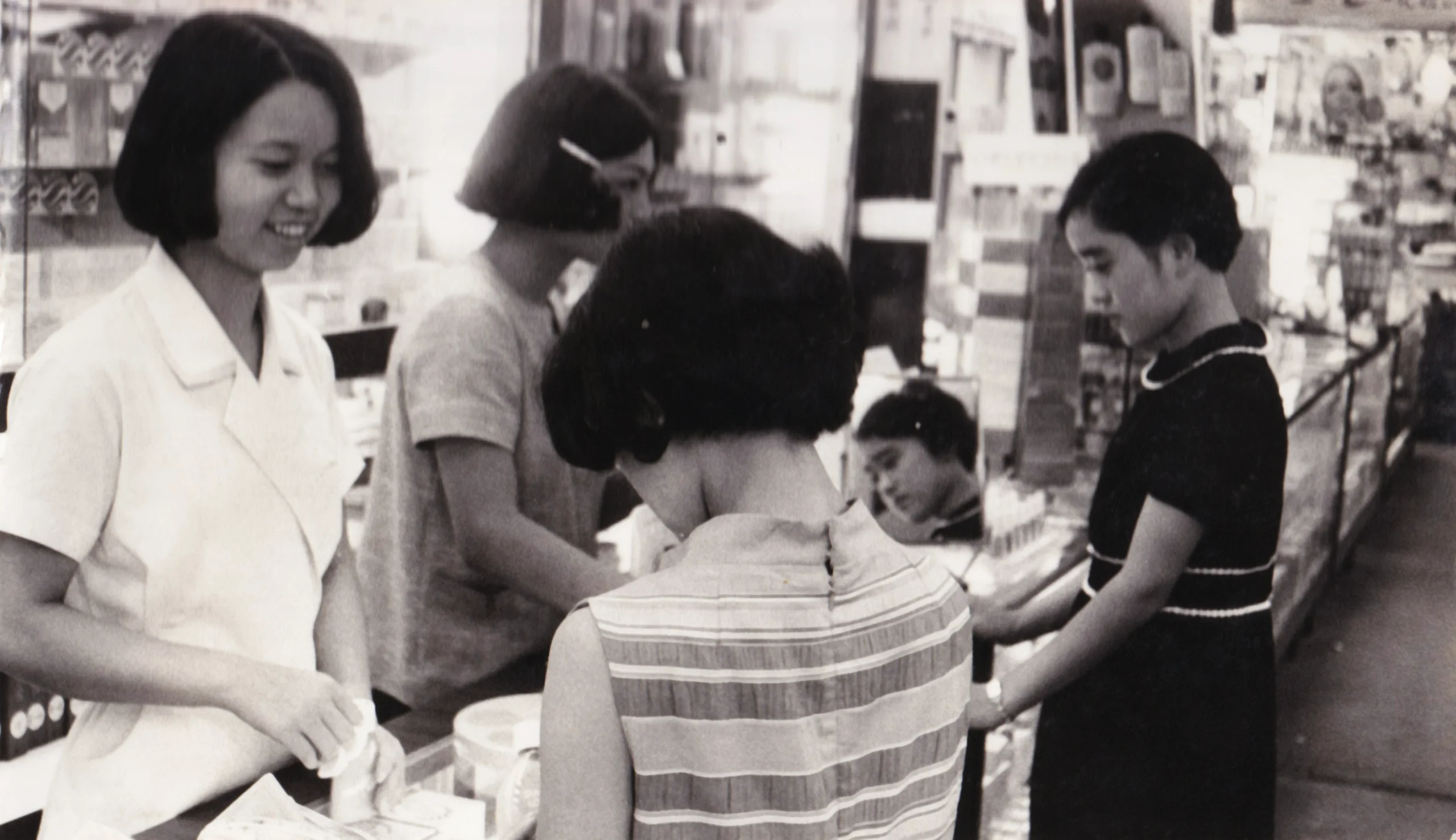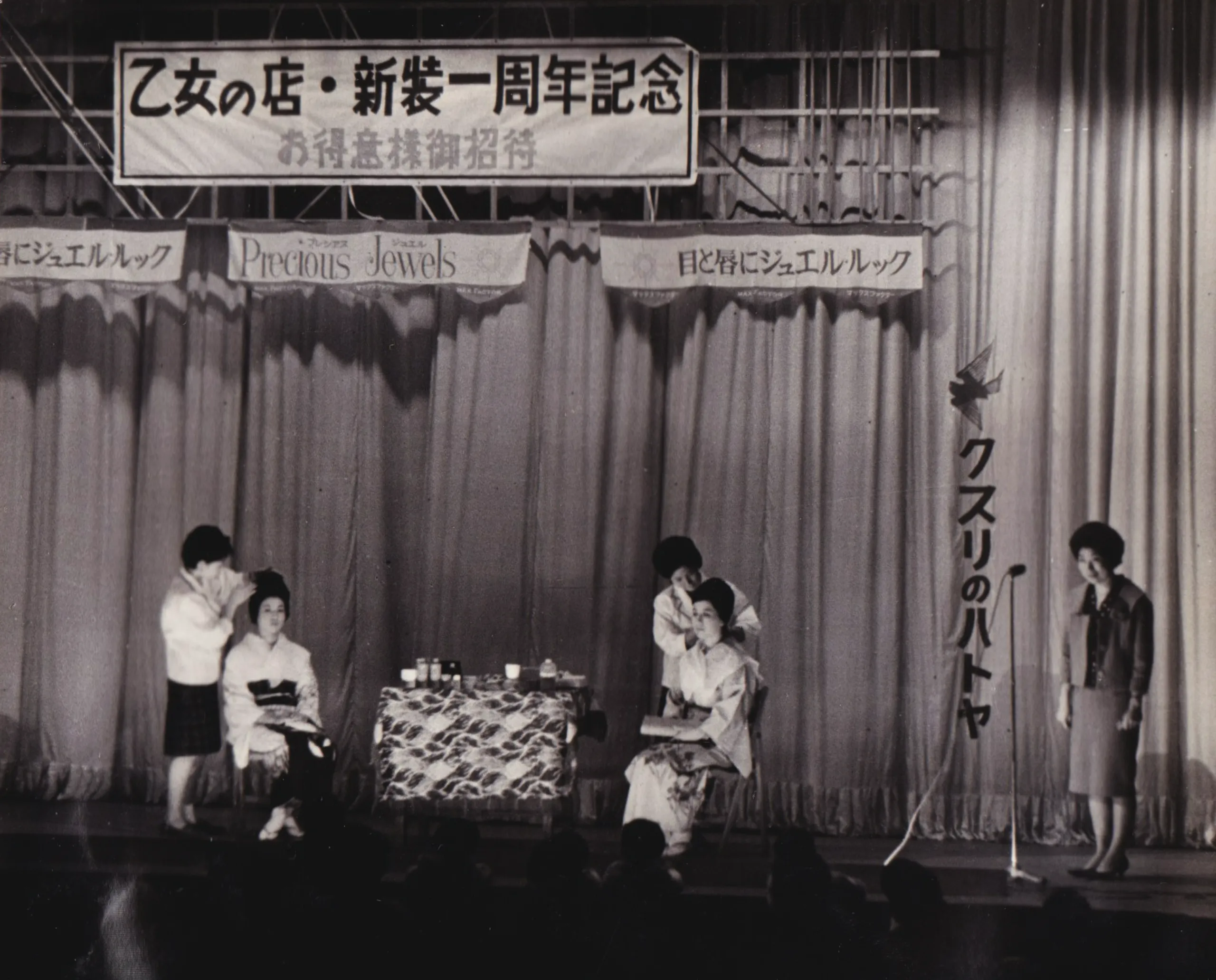 1948年、戦後の混乱と復興の狭間にあった時代。女性たちがふたたび前を向き、自分らしく美しく生きることを支えたいという想いから、「主婦と乙女の店」は誕生しました。取り扱いは、化粧品・貴金属・アクセサリー・バッグなどの雑貨が中心。単なる物販にとどまらず、女性の日常をより豊かに、洗練されたものにするための提案型の店舗として、地域に新たな価値を提供していきました。