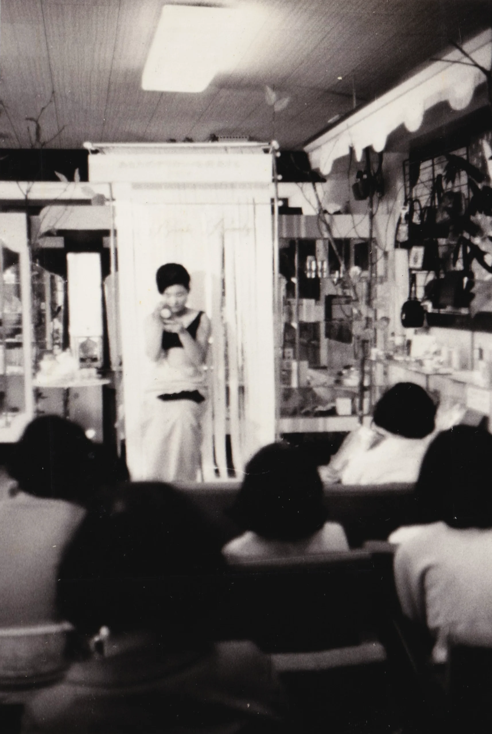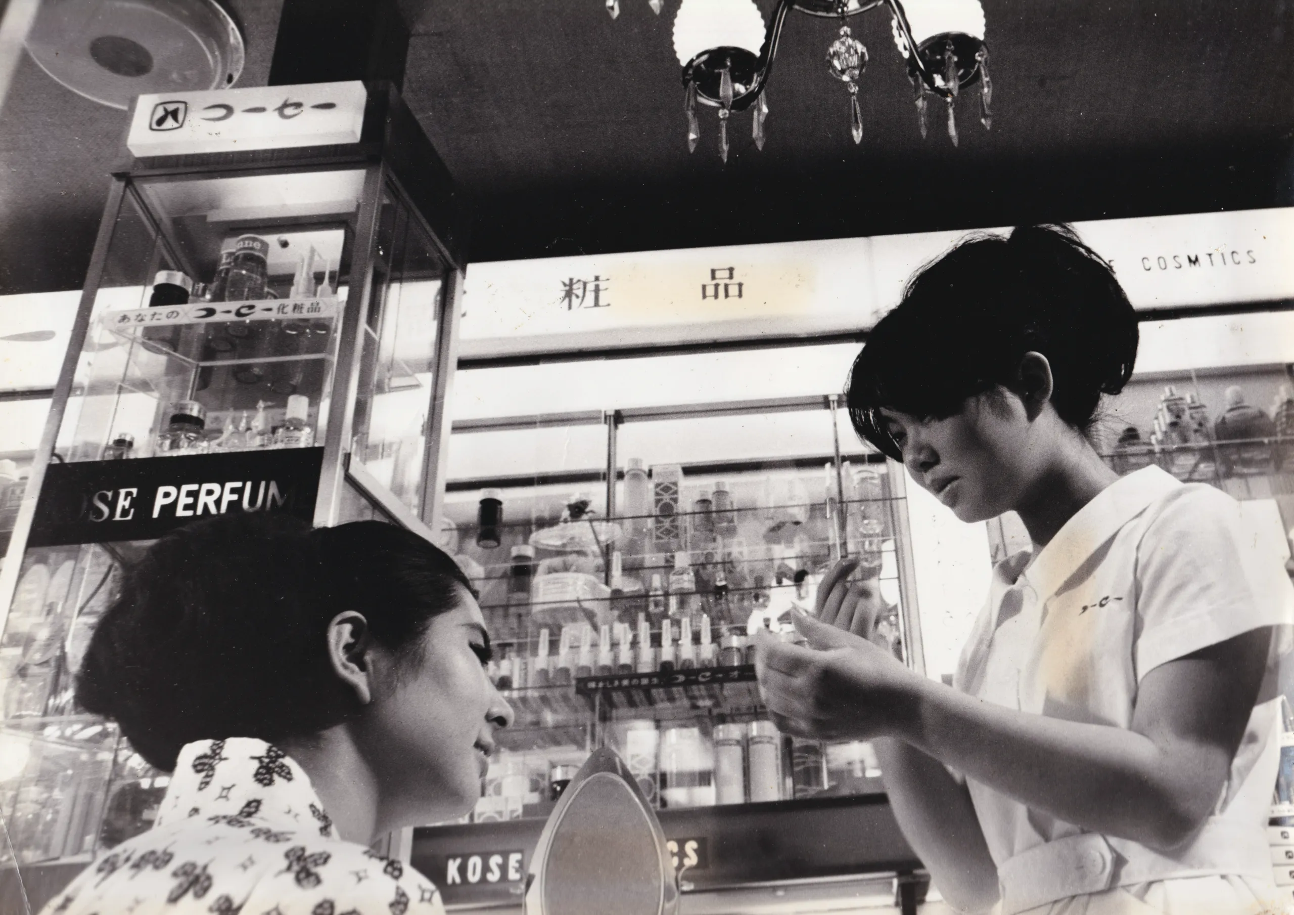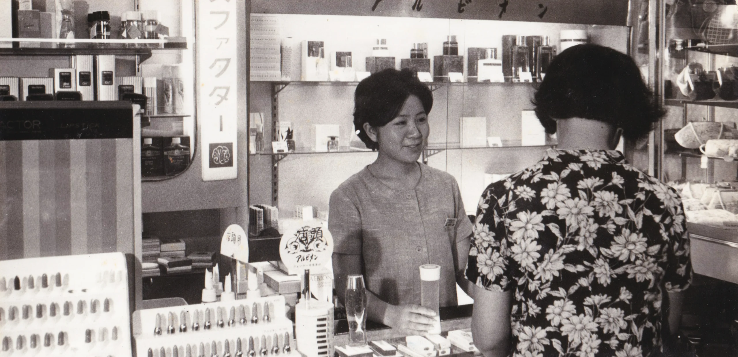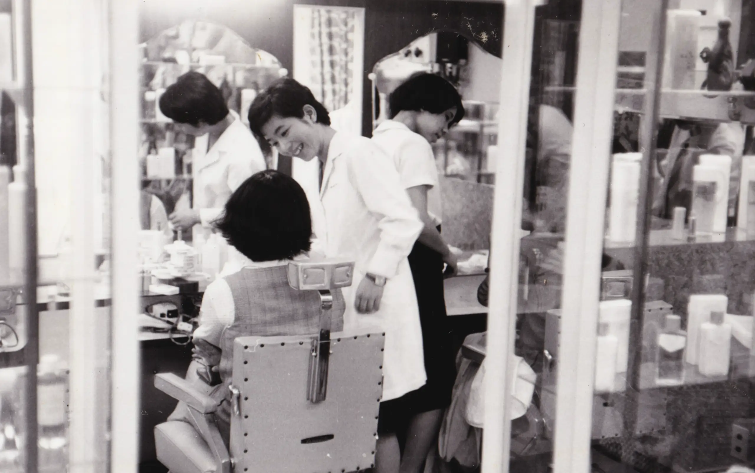 創業者・図師鉄二郎と妻・洋子により、「乙女の店」として事業を開始。当初は化粧品やバッグなどの雑貨販売を中心に、女性社員がご家庭を訪問し、商品提案とともにフェイシャルマッサージのサービスを提供するスタイルで、美容を身近に届けていました。