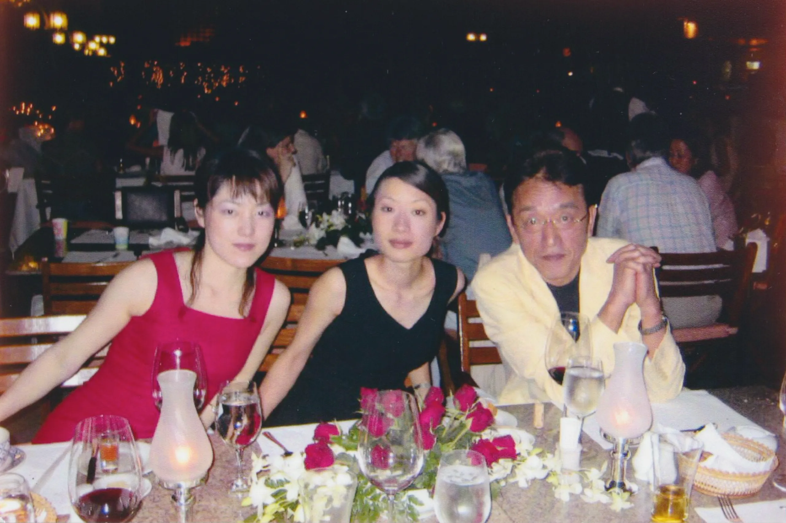 ドクター石井(右)、妻でシャンソン歌手の坂本スミ子氏(左)、中央は育代。
