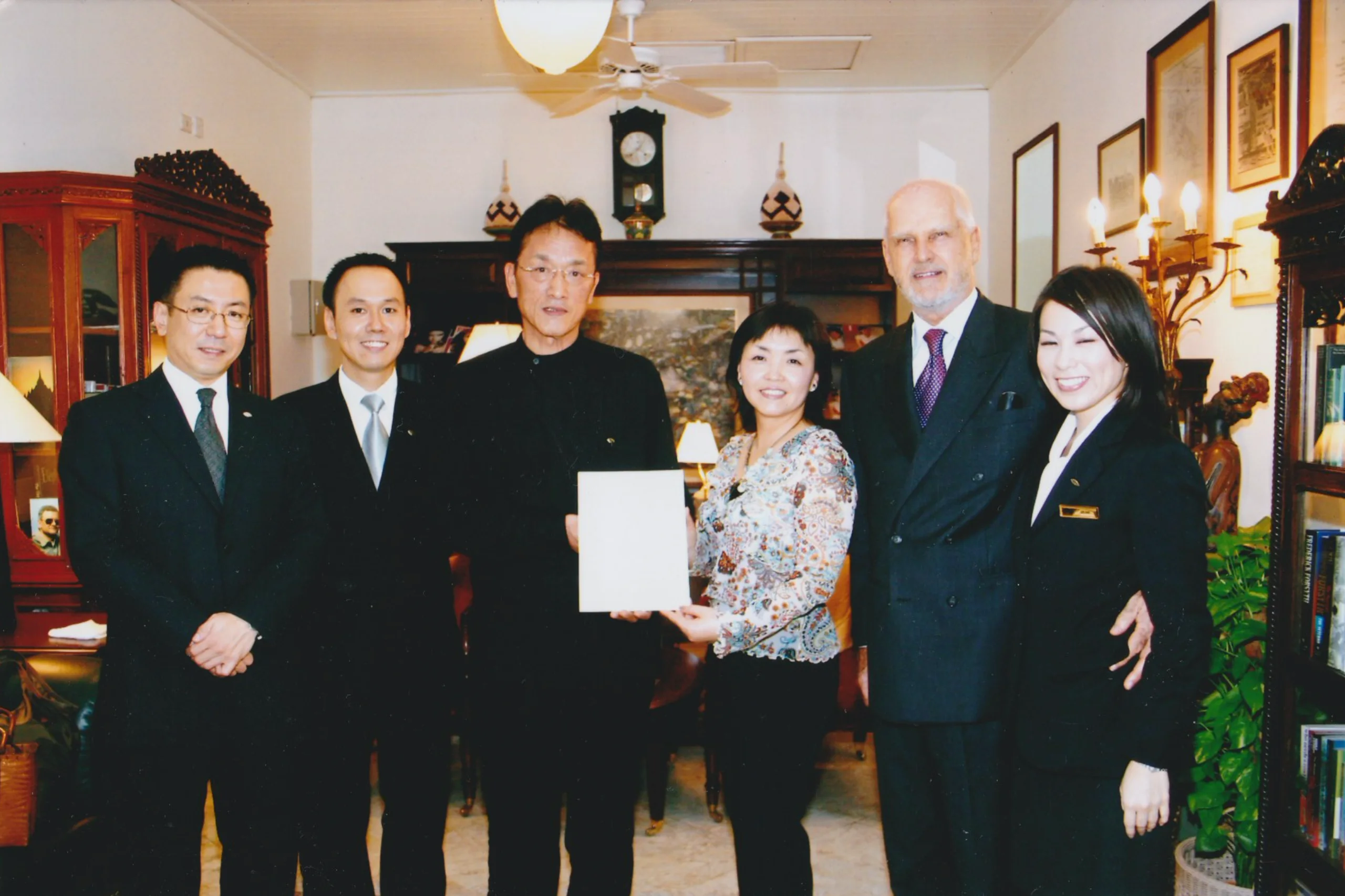 バンコク・マンダリンオリエンタルにて。総支配人とスタッフとの記念写真。
